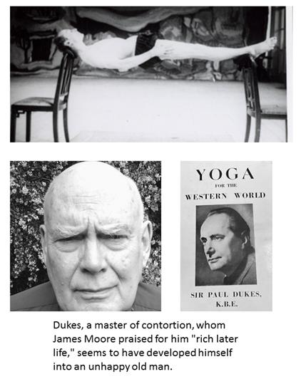 An exchange between Dukes and Ozay (Gurdjieff): Dukes: 'My father was a parson [priest]' Ozay: 'Ah, you had a bad start. One does not expect divines to understand the Bible. They cling to the text.' (from Chapter 7) Dukes seems to demonstrates this with he own preaching, which emphasizes the importance of perfecting one's body as an instrument to serve the higher, with readiness to submit to the evil: . . . special exercises contained in the Sermon on the Mount and other portions of Christ's teaching—not to resist evil but turn the other cheek not to resist evil but turn the other cheek, to pluck out eye and cut off hand that offend, to confine speech to yea and nay, to take no thought for the morrow—all such exercises are essentials of Yogic training . . . (from Chapter 17) What does this translate into sexually? When I was sent to a small public school my musical ability ceased to be a singularity and became a distinction. I was happier. Yet many circumstances both of home and school conspired to reinforce the tendency to reserve, not to say secretiveness. Among these were the unwelcome attentions of a master [teacher] whom I dared not antagonize by open repulsion and whose fondling I suffered for a long time in agonized frigidity until he at last gave up and transferred his attentions to another. He was a highly cultivated man whose friendship I otherwise valued, which only made the position more difficult. (from Chapter 1)